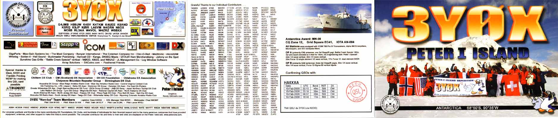 3Y0X: Peter One expedition. A nice six-sided QSL card :-) Click on the card to enlarge its sides.